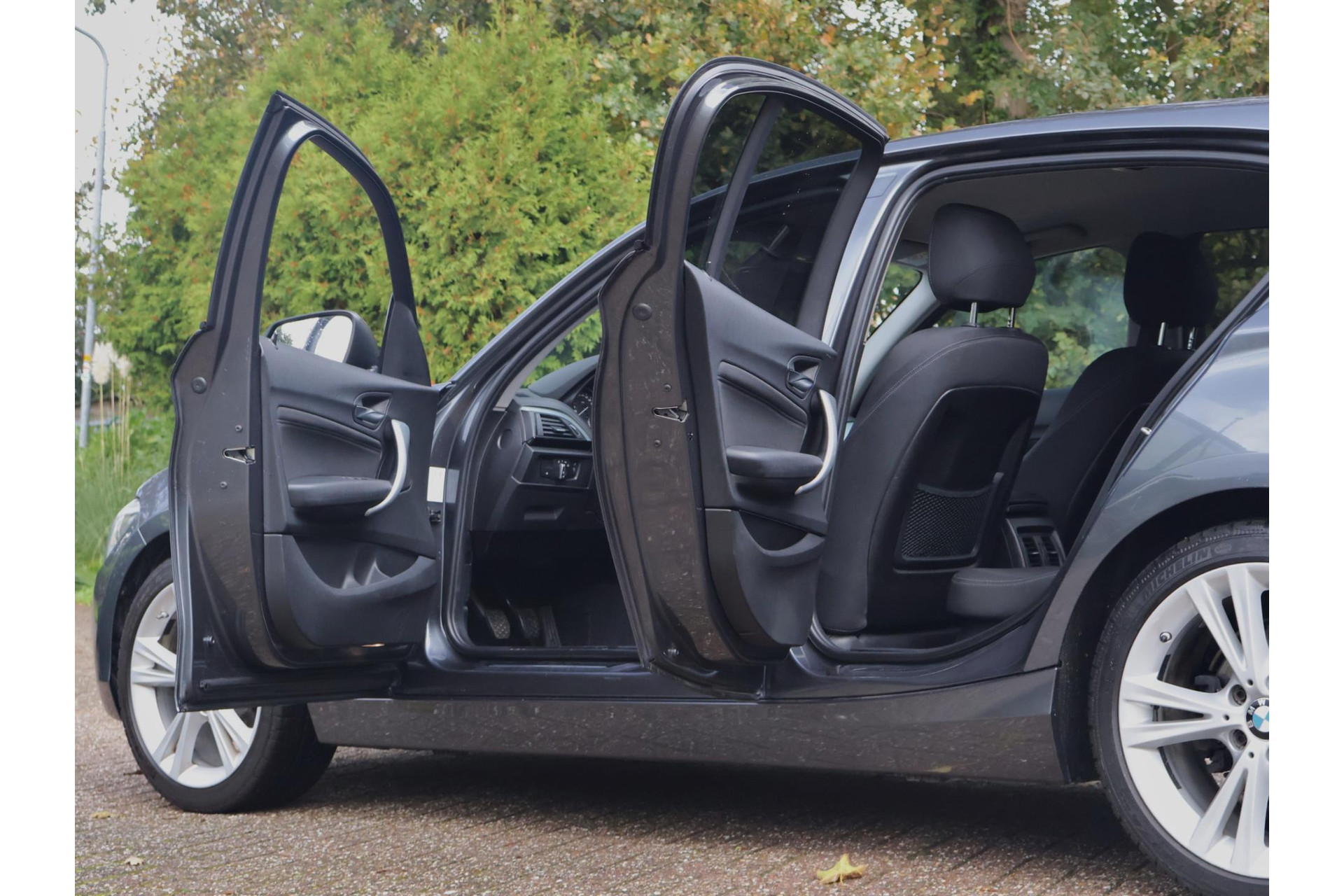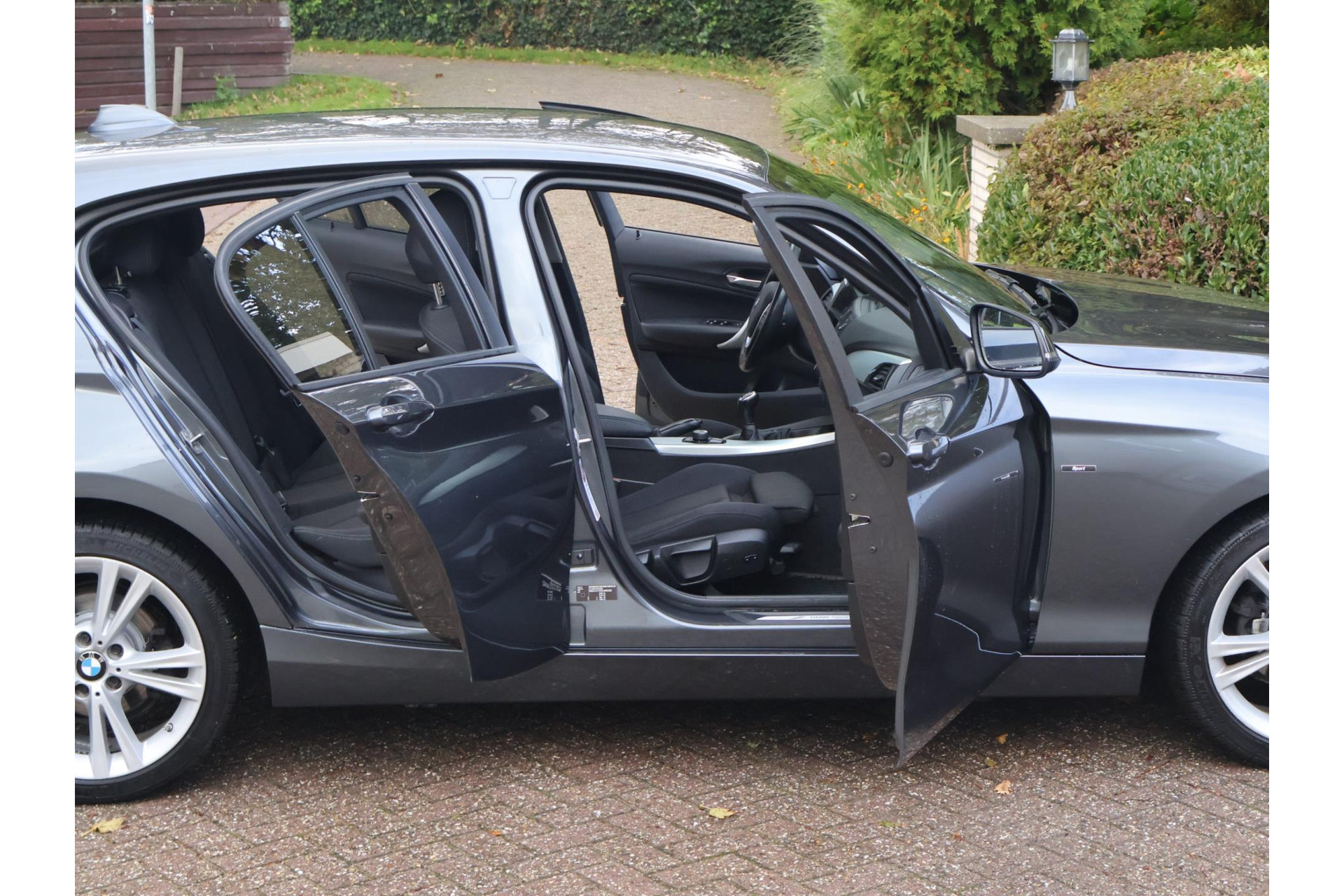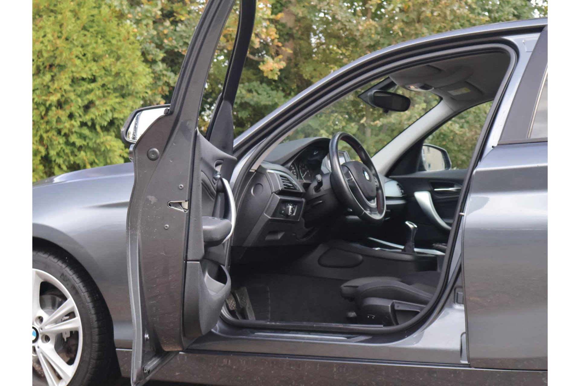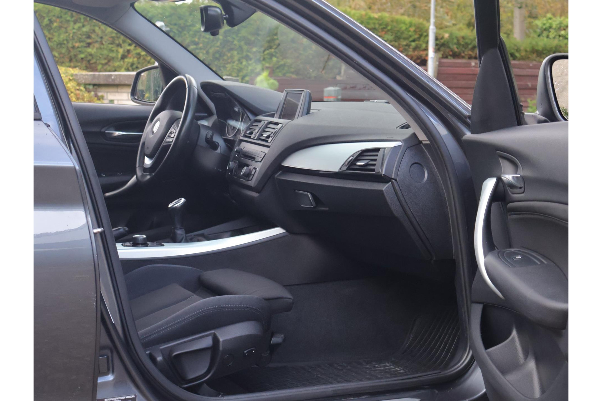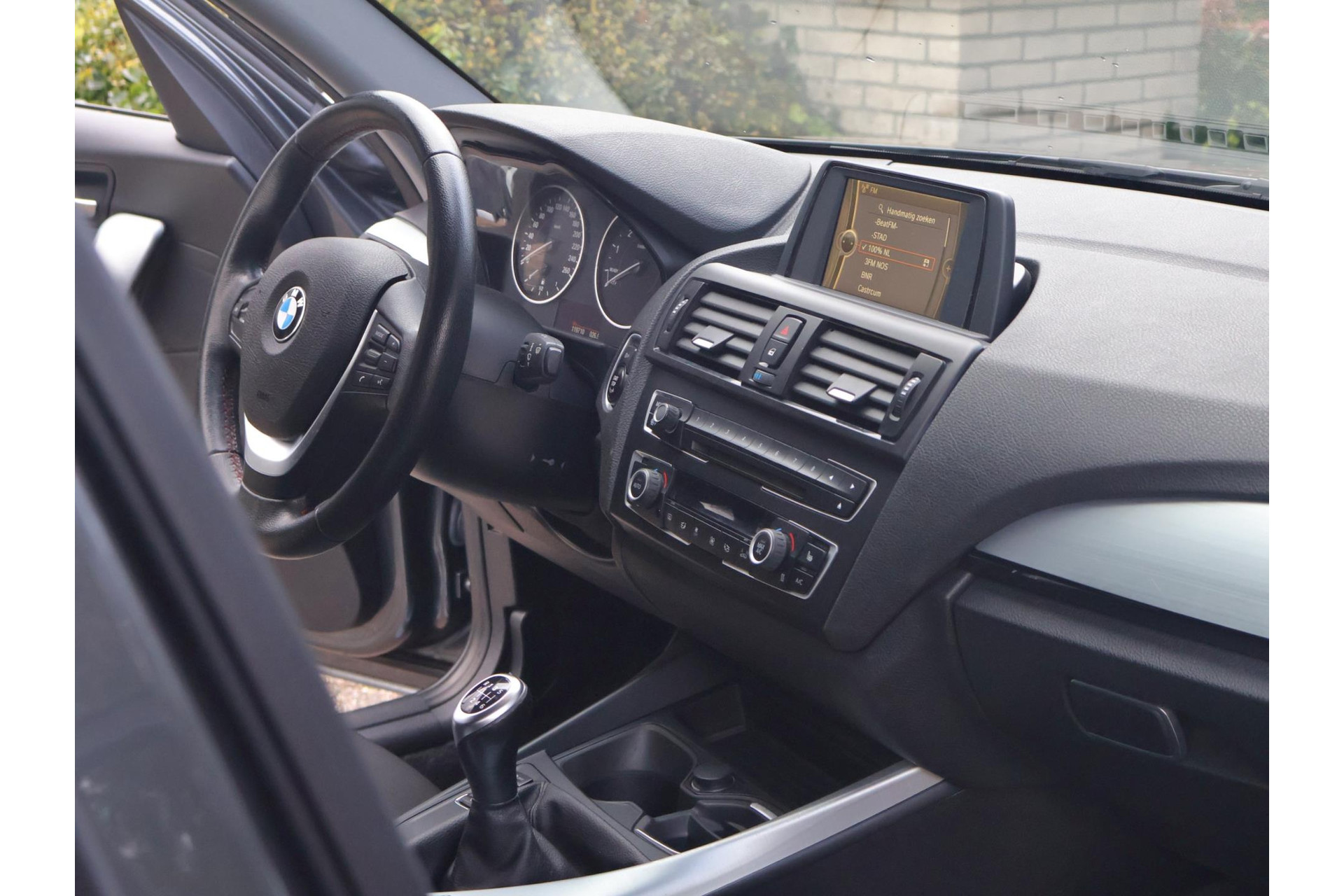 In Mineralgrau metallic is deze BMW 116i een absolute eye-catcher! De 17" lichtmetalen velgen onderstrepen zijn sportieve karakter. Met 135pk een heerlijke rijdersauto…. dat betekent dat iedere kilometer gewoon heel erg leuk is. Op lange afstanden een comfortabele auto. Kiest de bestuurder voor een sportievere setting, dan kan dat met de instelbare rijkarakteriestiek. De keuze om juist te gaan voor een laag brandstofverbruik in Eco of juiste een strakkere reactie in Sport. Daartussen is de standaard instelling Comfort.