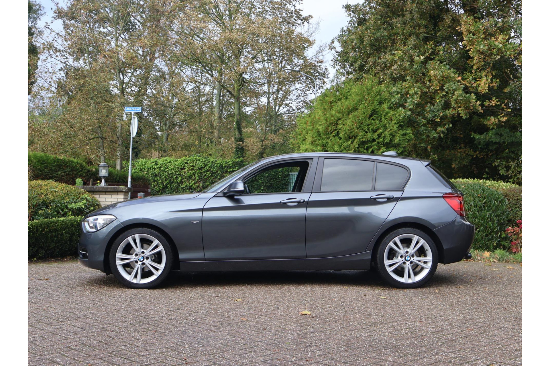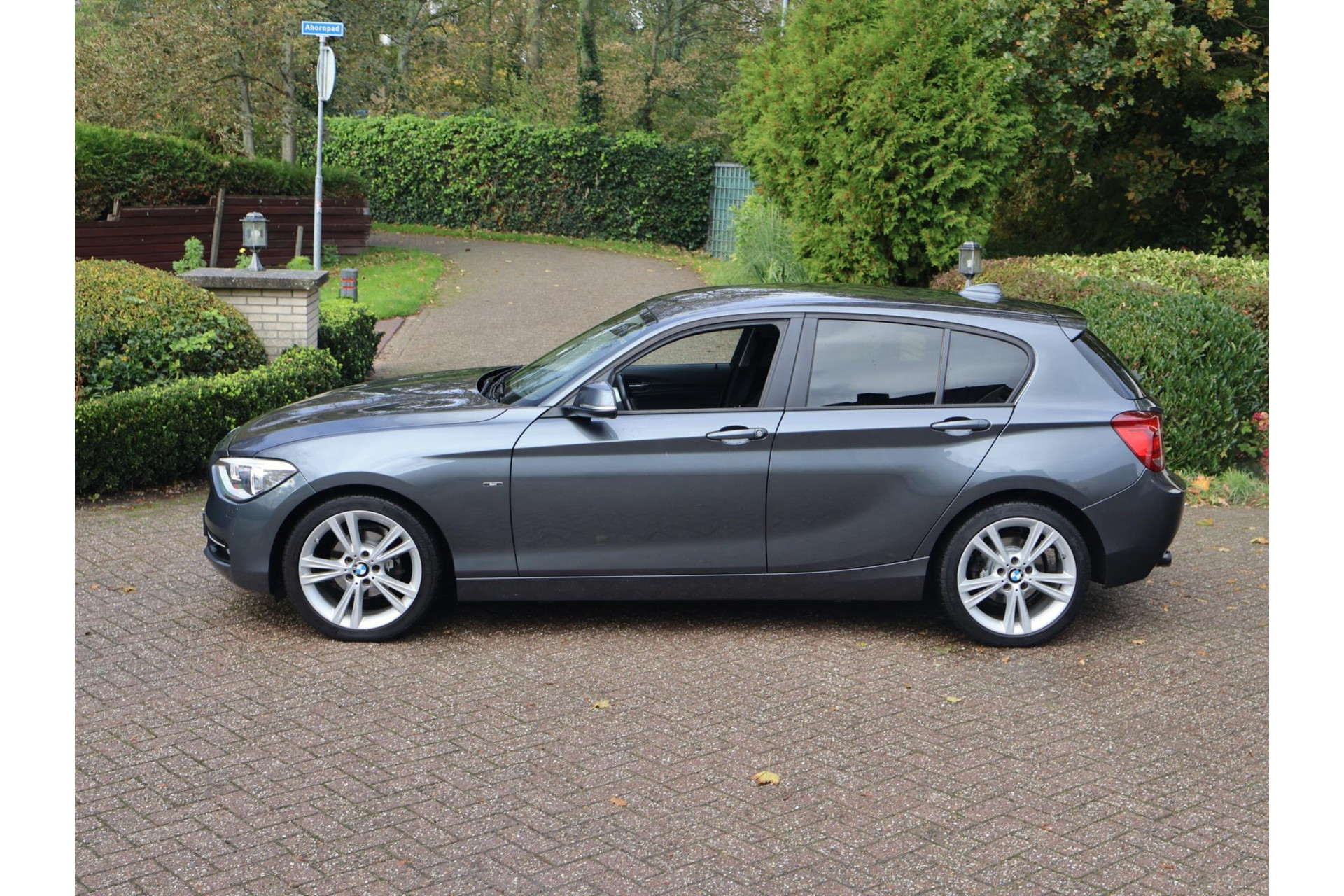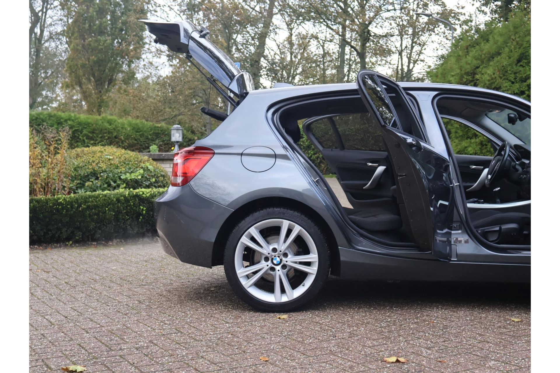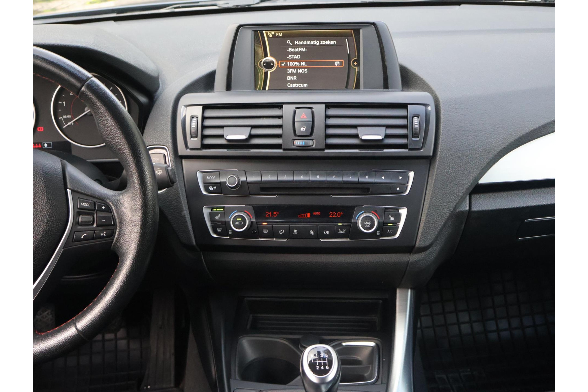 In Mineralgrau metallic is deze BMW 116i een absolute eye-catcher! De 17" lichtmetalen velgen onderstrepen zijn sportieve karakter. Met 135pk een heerlijke rijdersauto…. dat betekent dat iedere kilometer gewoon heel erg leuk is. Op lange afstanden een comfortabele auto. Kiest de bestuurder voor een sportievere setting, dan kan dat met de instelbare rijkarakteriestiek. De keuze om juist te gaan voor een laag brandstofverbruik in Eco of juiste een strakkere reactie in Sport. Daartussen is de standaard instelling Comfort.