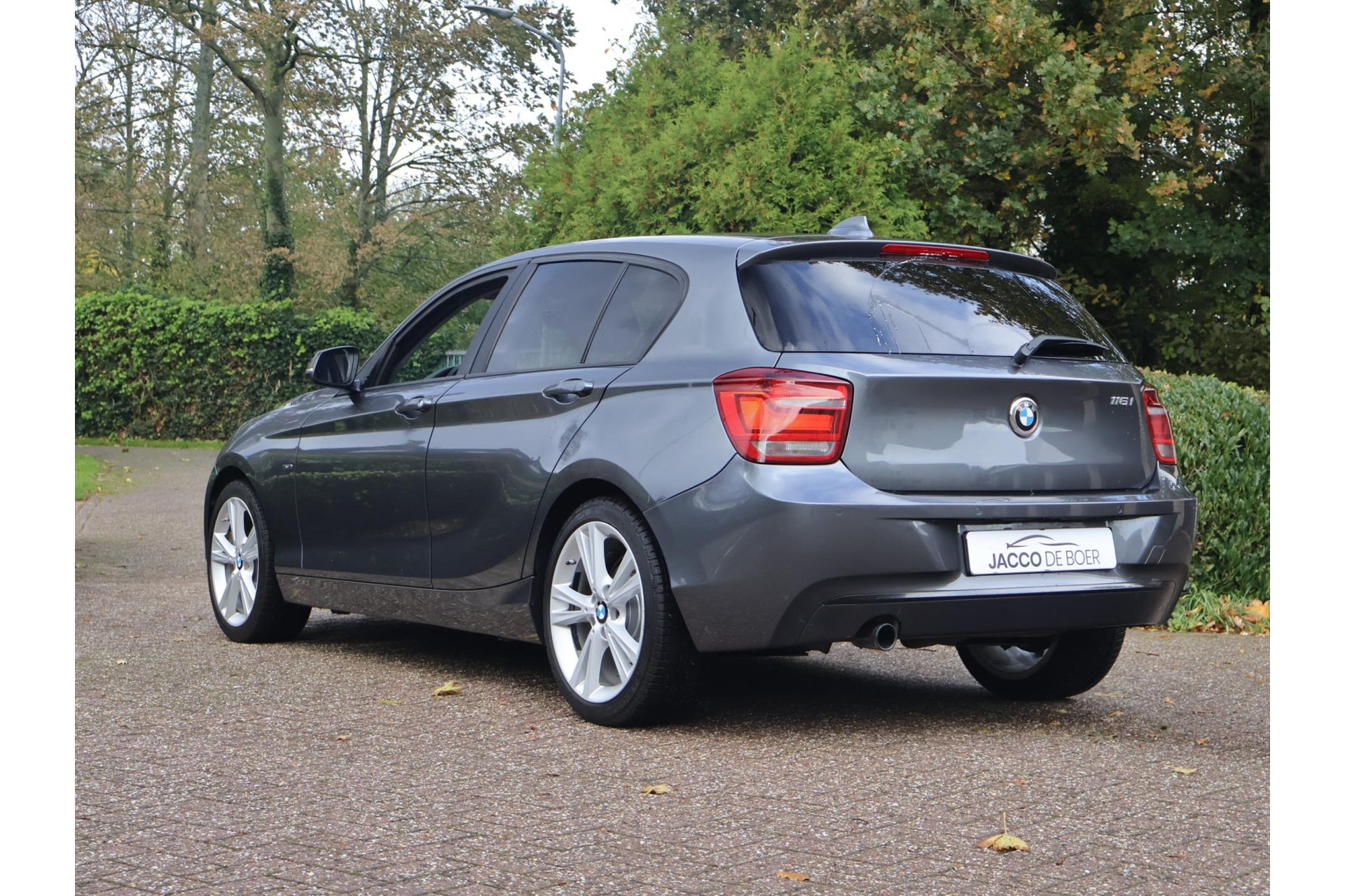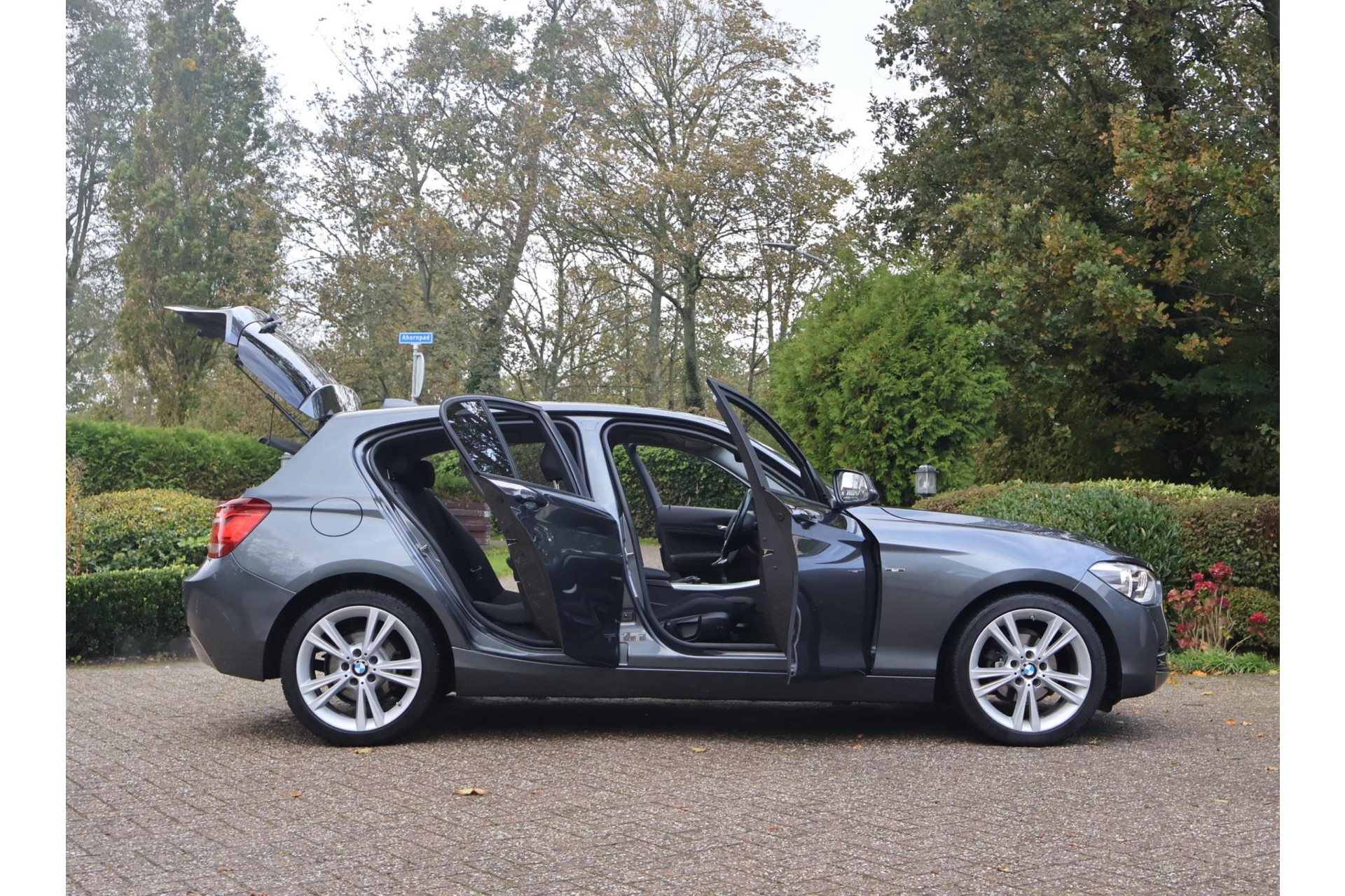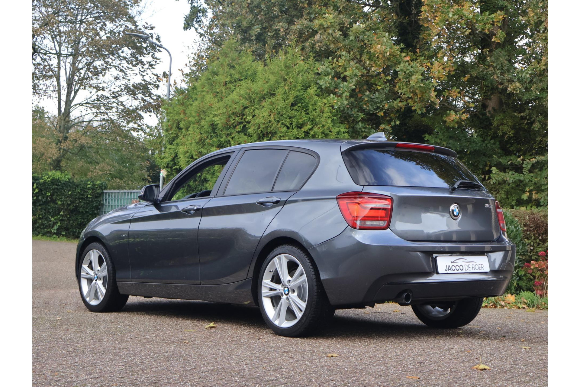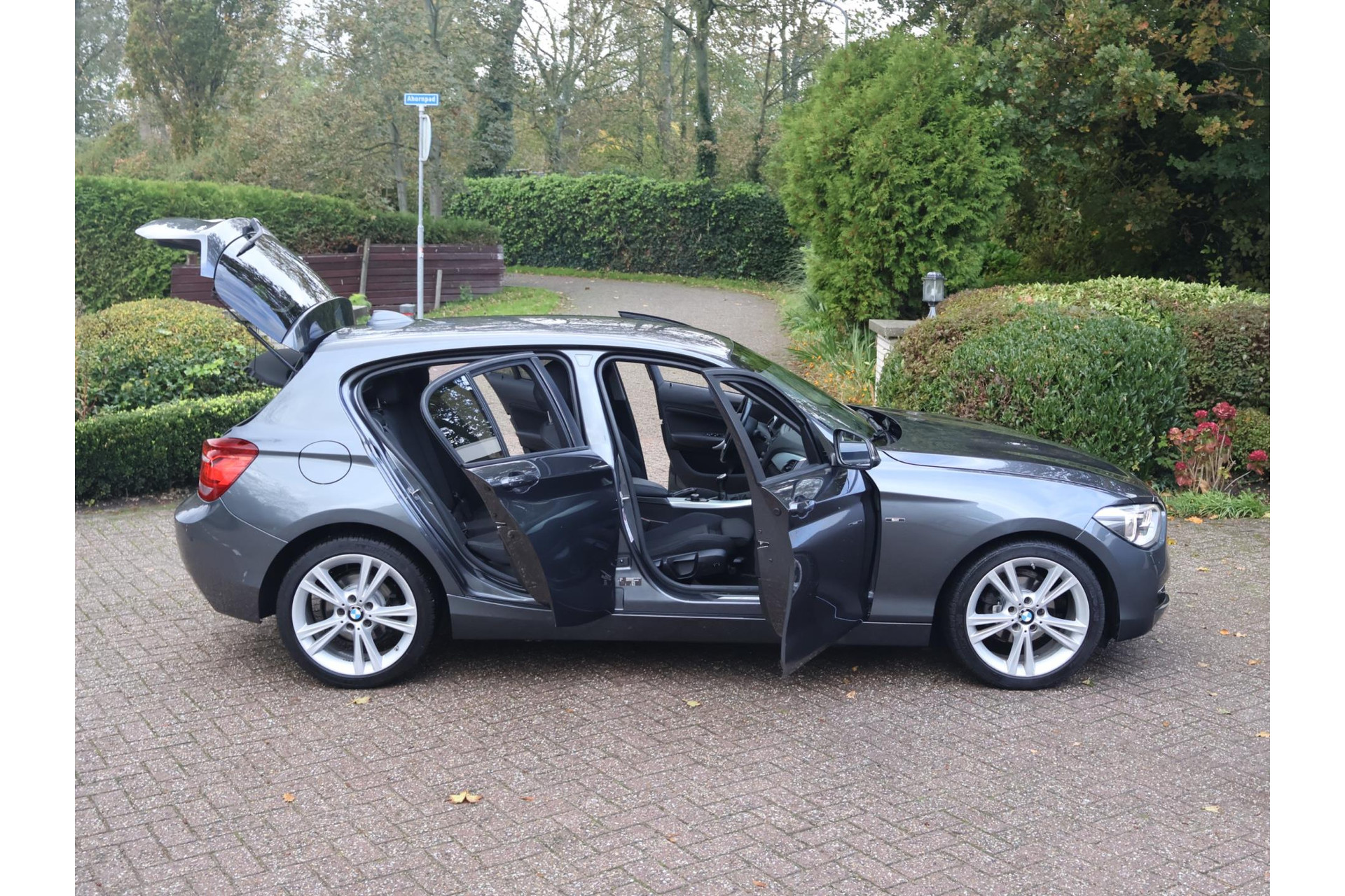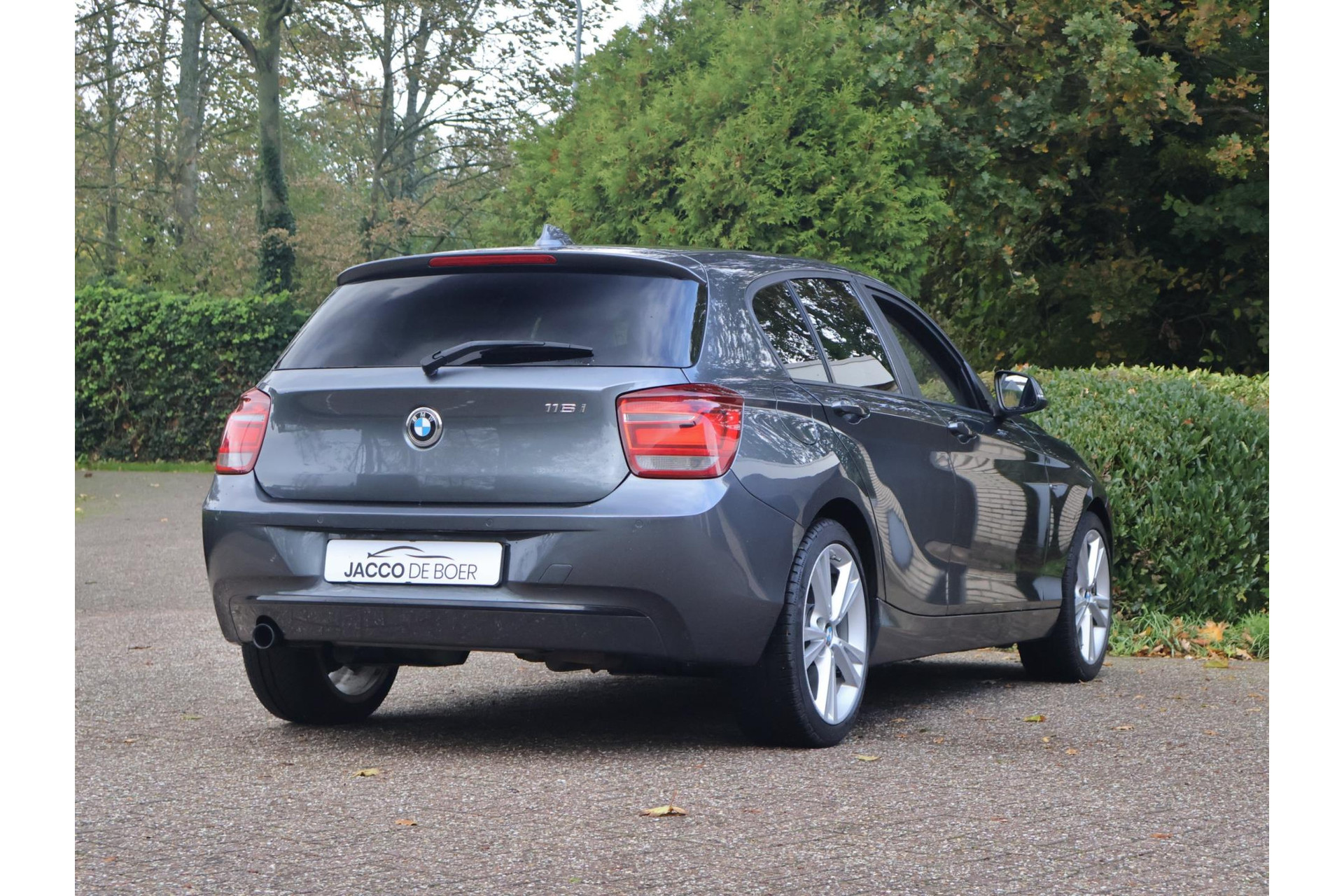 In Mineralgrau metallic is deze BMW 116i een absolute eye-catcher! De 17" lichtmetalen velgen onderstrepen zijn sportieve karakter. Met 135pk een heerlijke rijdersauto…. dat betekent dat iedere kilometer gewoon heel erg leuk is. Op lange afstanden een comfortabele auto. Kiest de bestuurder voor een sportievere setting, dan kan dat met de instelbare rijkarakteriestiek. De keuze om juist te gaan voor een laag brandstofverbruik in Eco of juiste een strakkere reactie in Sport. Daartussen is de standaard instelling Comfort.
