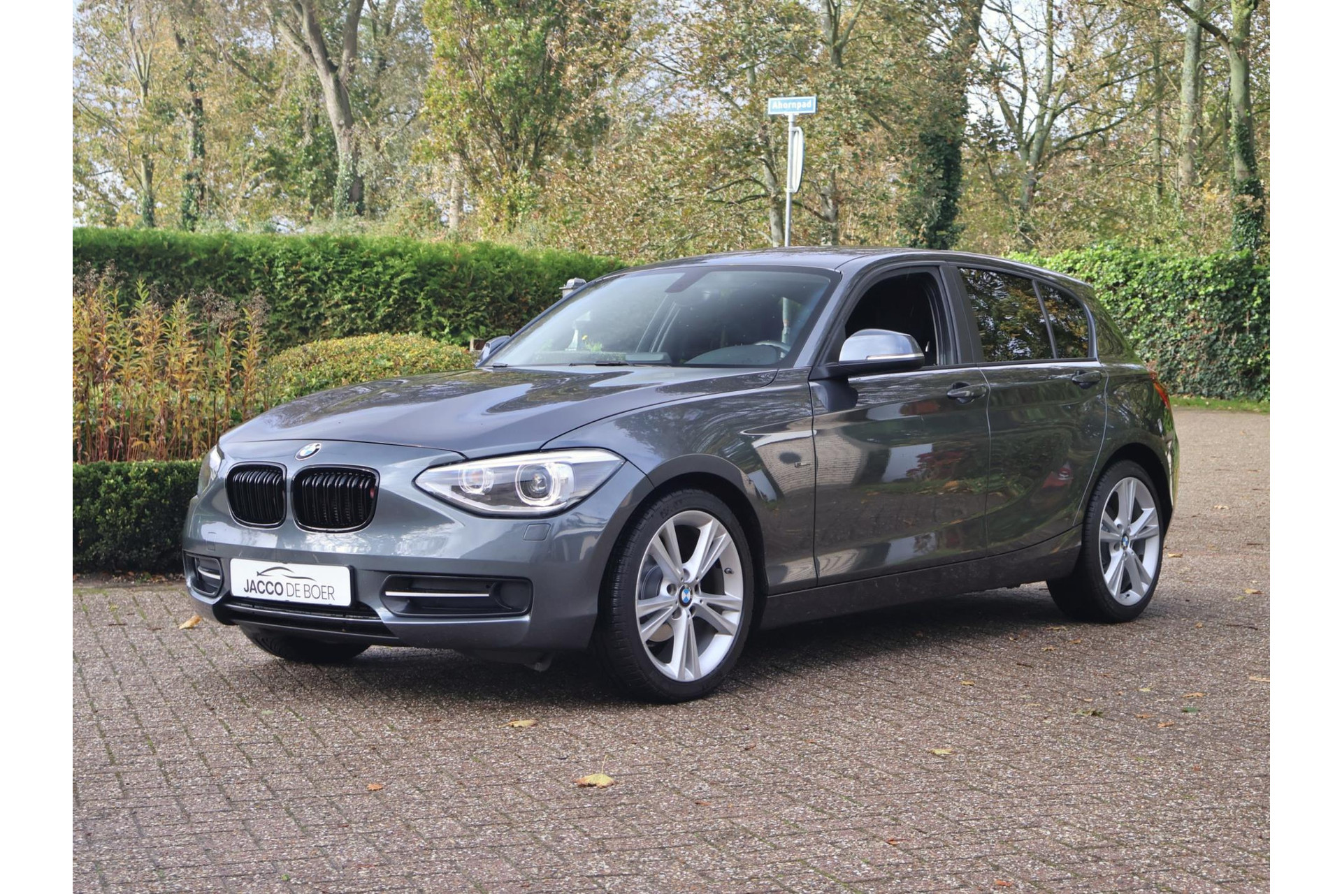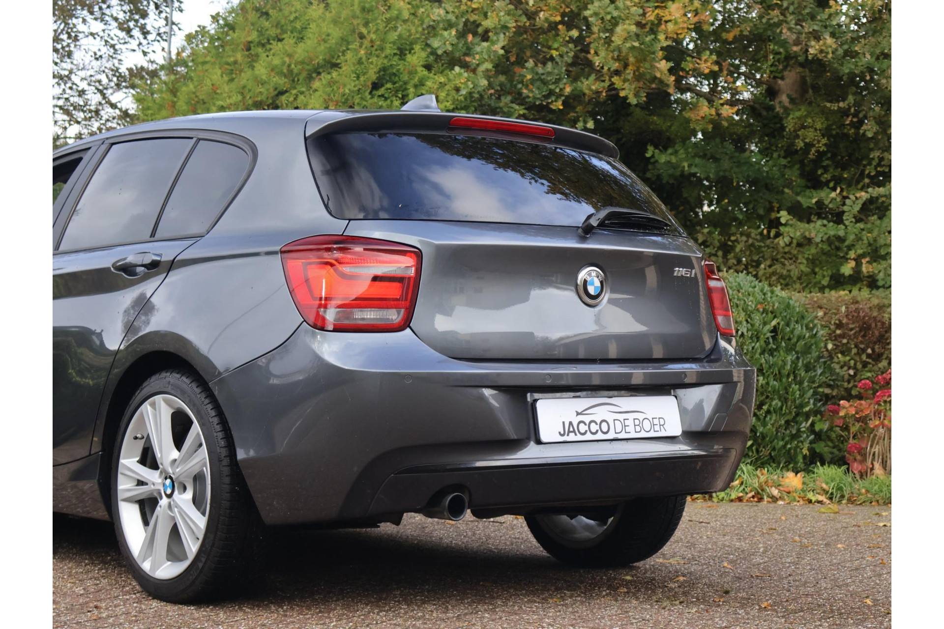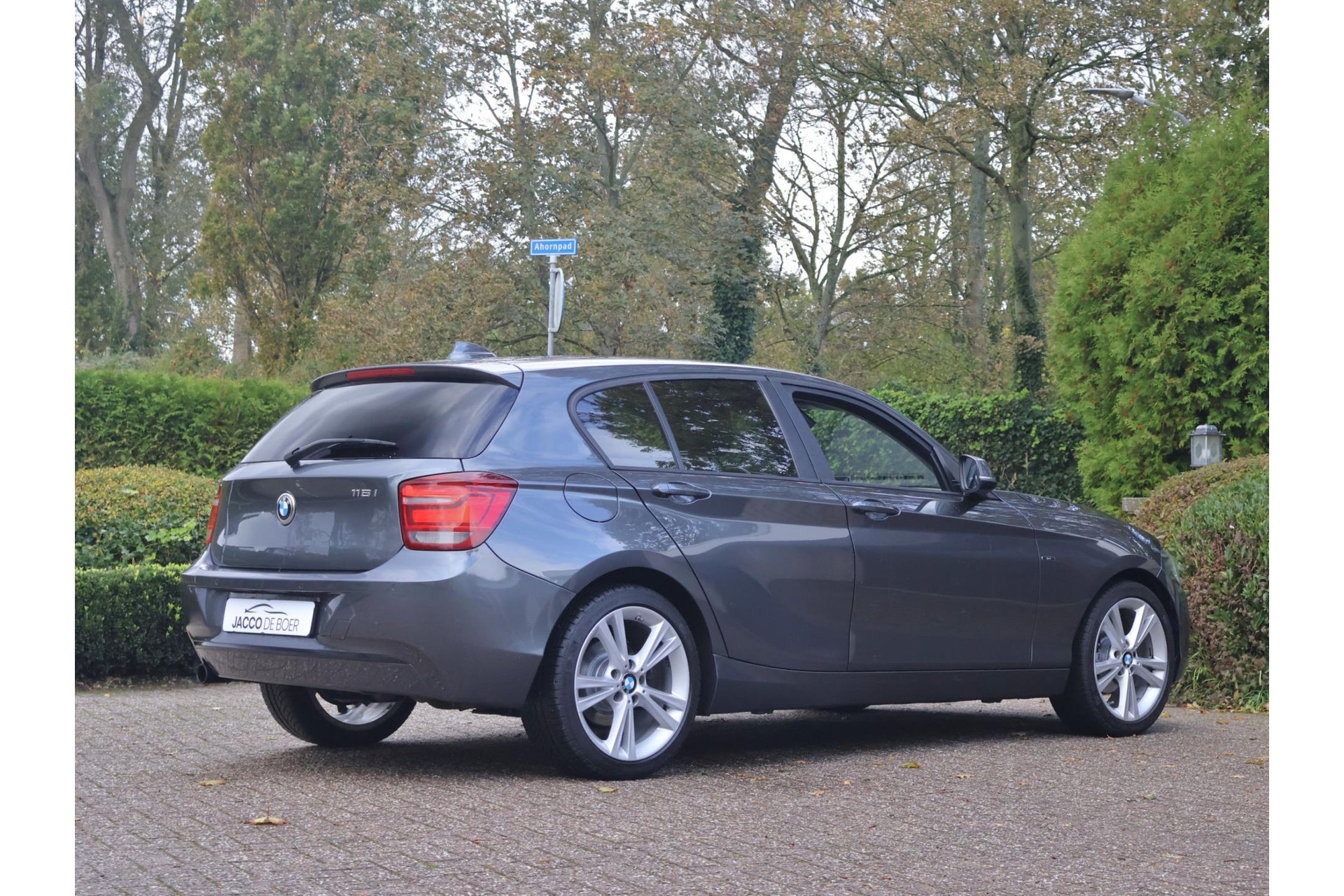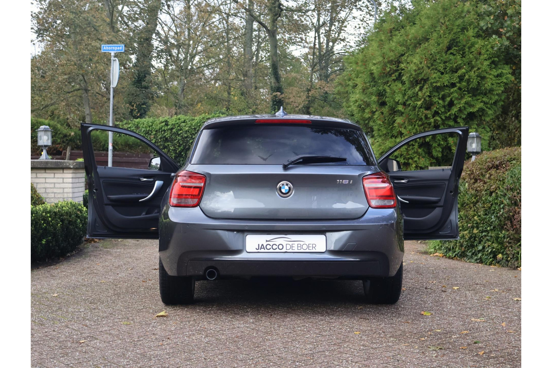 In Mineralgrau metallic is deze BMW 116i een absolute eye-catcher! De 17" lichtmetalen velgen onderstrepen zijn sportieve karakter. Met 135pk een heerlijke rijdersauto…. dat betekent dat iedere kilometer gewoon heel erg leuk is. Op lange afstanden een comfortabele auto. Kiest de bestuurder voor een sportievere setting, dan kan dat met de instelbare rijkarakteriestiek. De keuze om juist te gaan voor een laag brandstofverbruik in Eco of juiste een strakkere reactie in Sport. Daartussen is de standaard instelling Comfort.