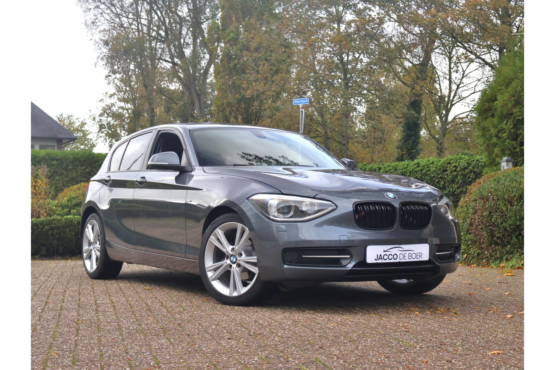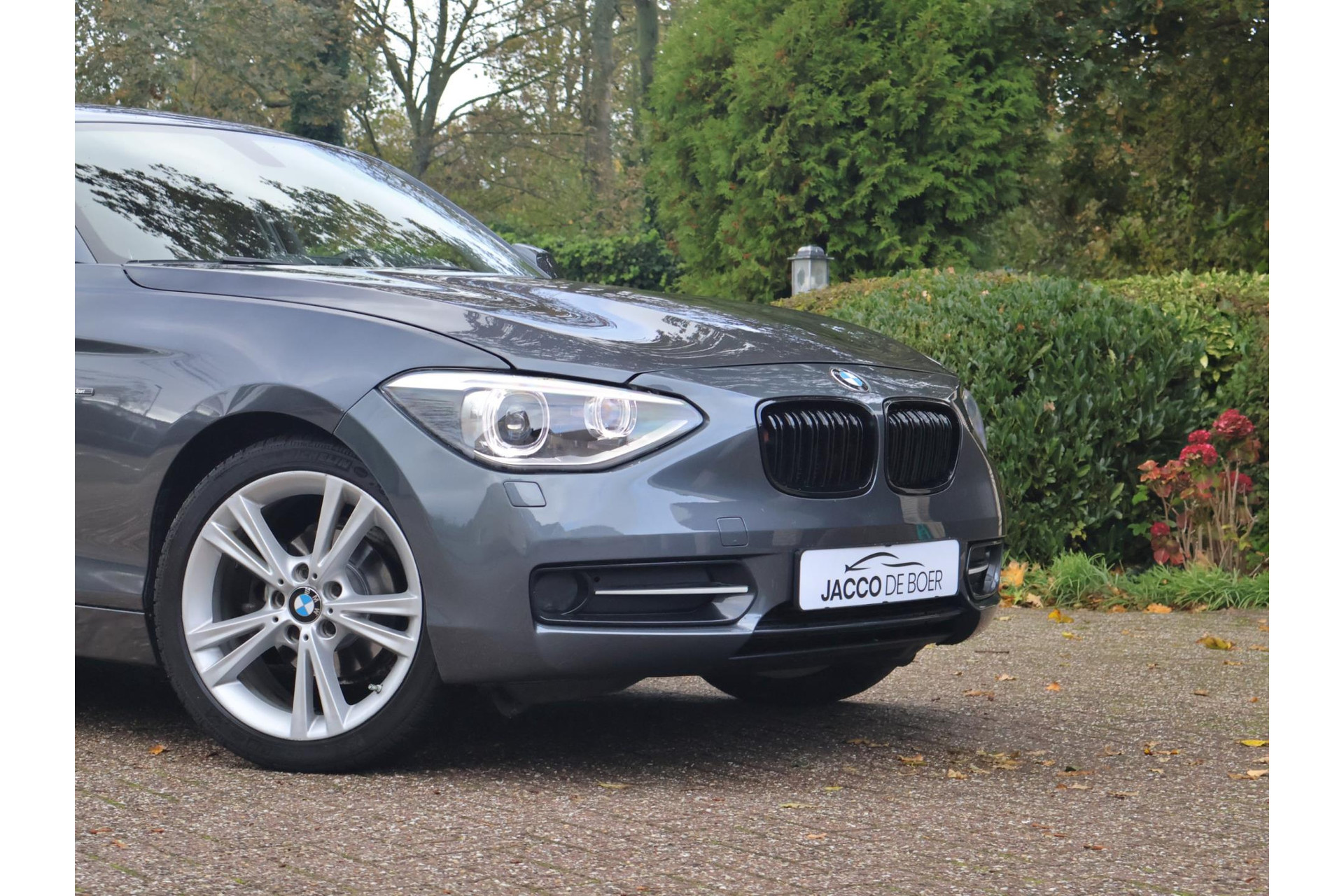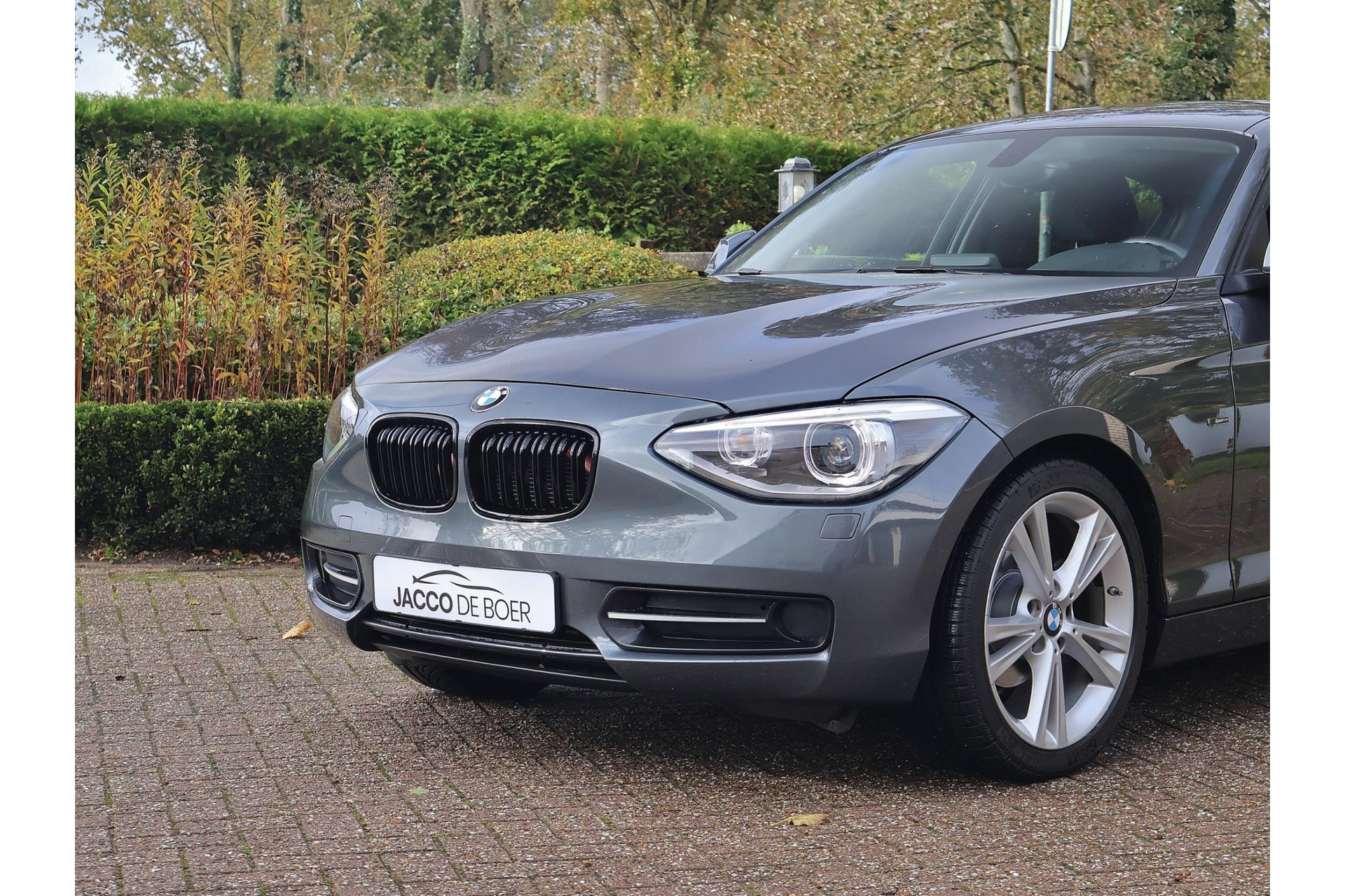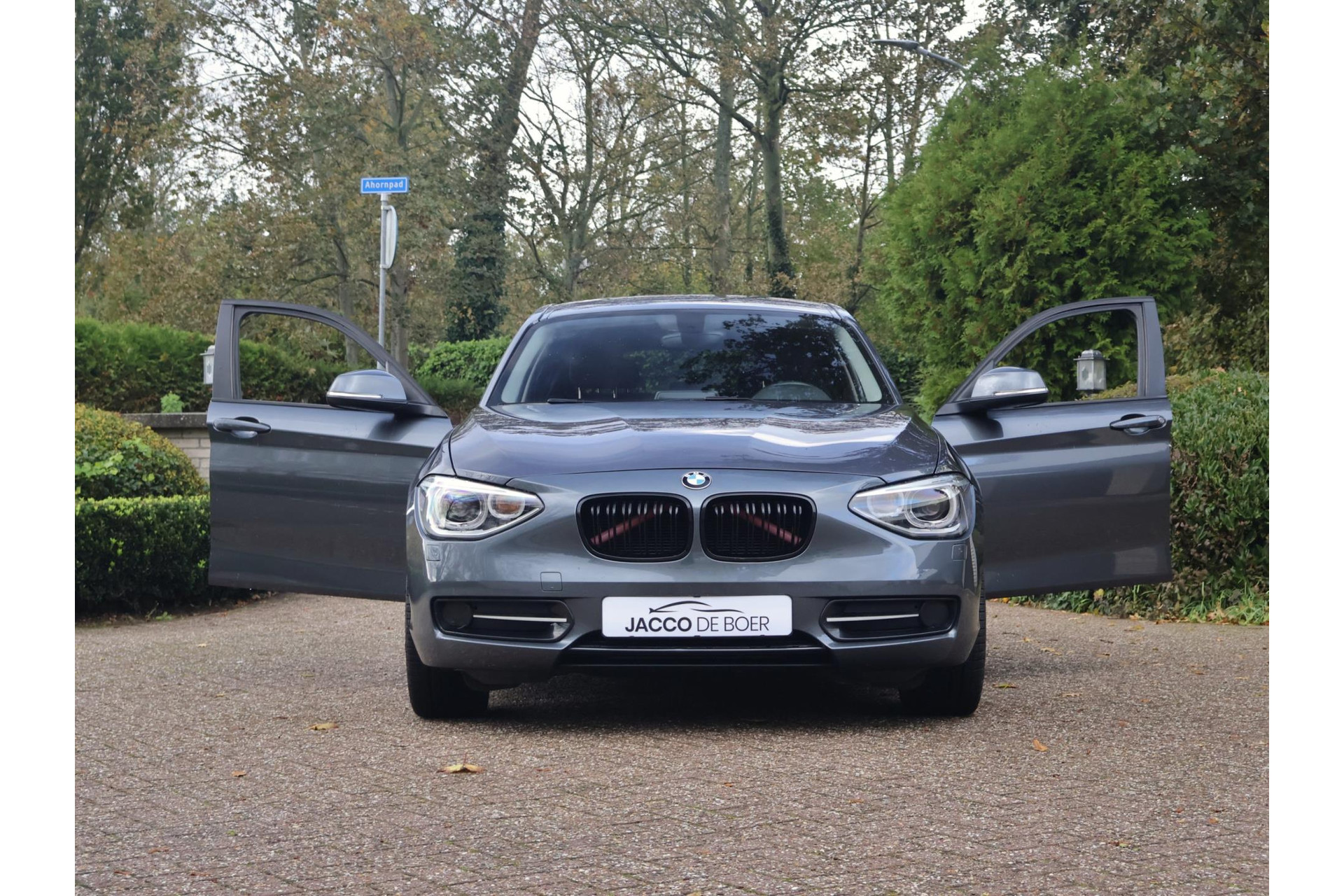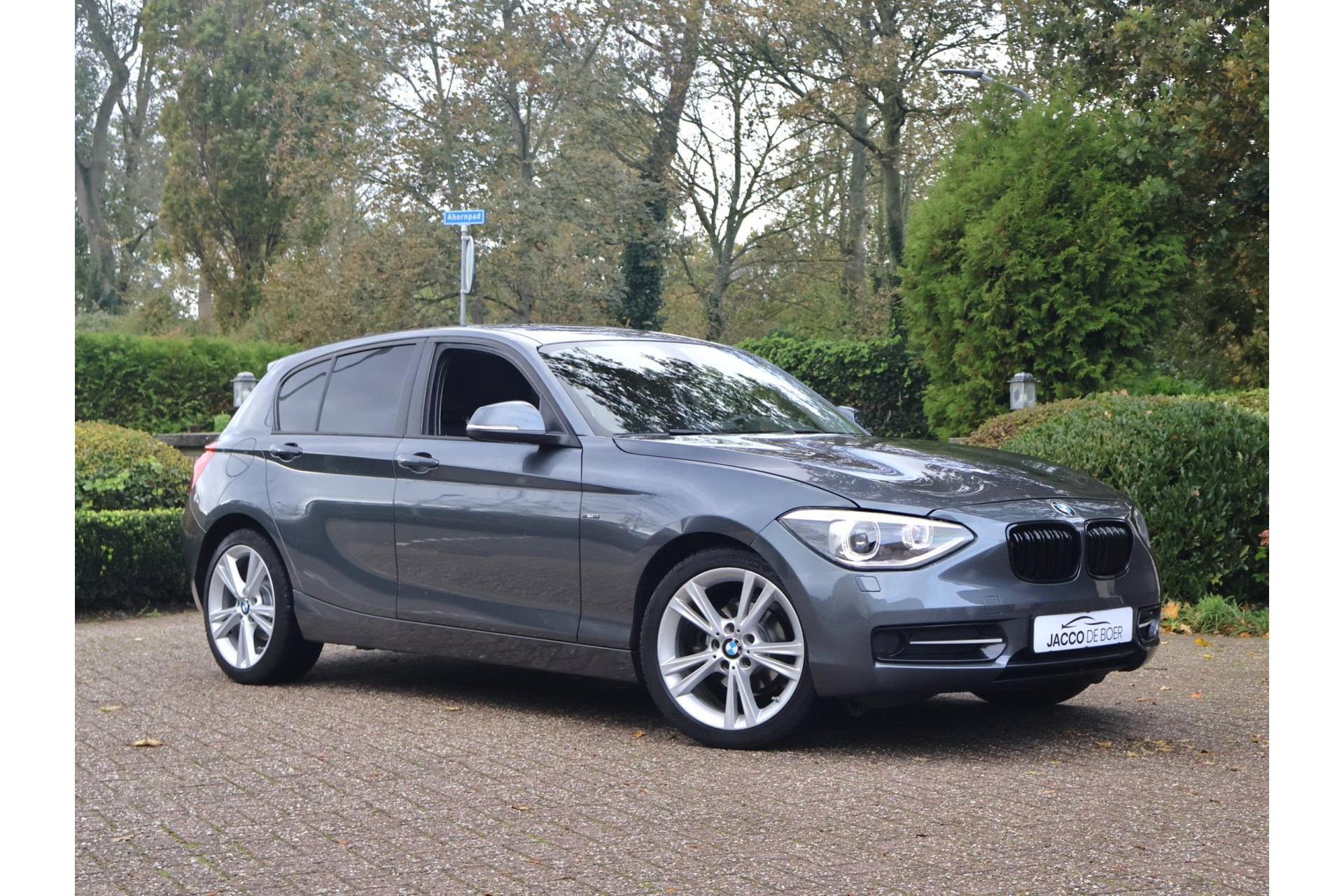 In Mineralgrau metallic is deze BMW 116i een absolute eye-catcher! De 17" lichtmetalen velgen onderstrepen zijn sportieve karakter. Met 135pk een heerlijke rijdersauto…. dat betekent dat iedere kilometer gewoon heel erg leuk is. Op lange afstanden een comfortabele auto. Kiest de bestuurder voor een sportievere setting, dan kan dat met de instelbare rijkarakteriestiek. De keuze om juist te gaan voor een laag brandstofverbruik in Eco of juiste een strakkere reactie in Sport. Daartussen is de standaard instelling Comfort.
