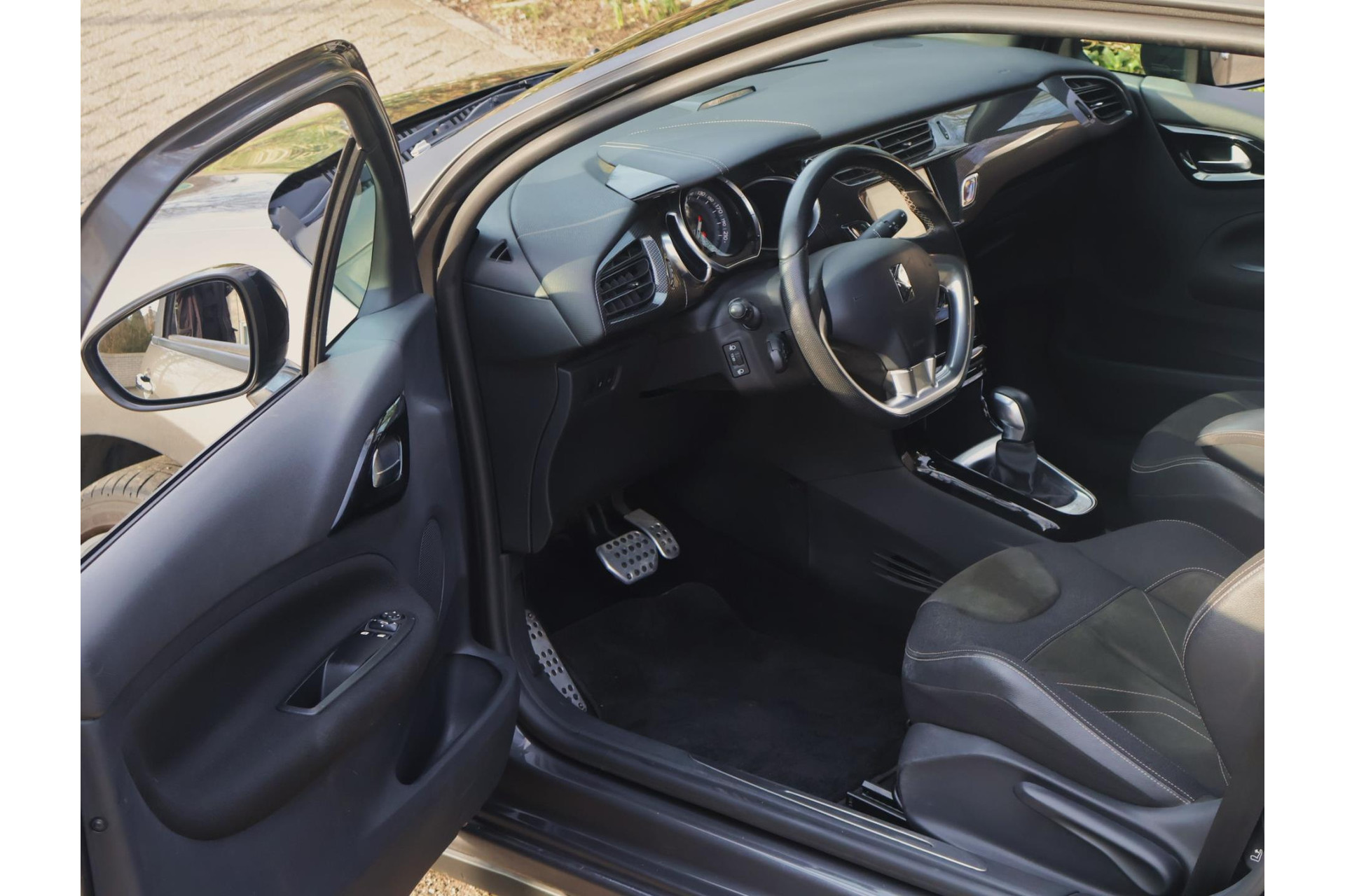 Citroen DS3 SportChic in Platinum Grey en antraciet alcantara sporstoelen met contrasterend stiksel…