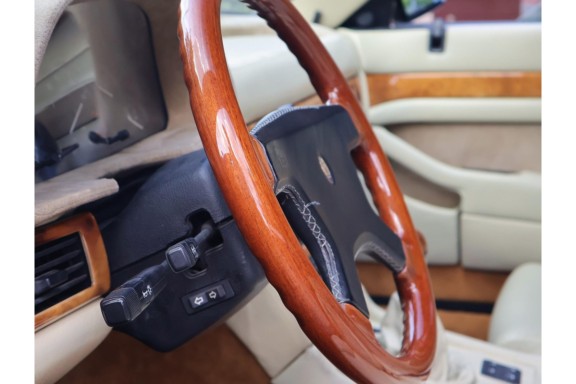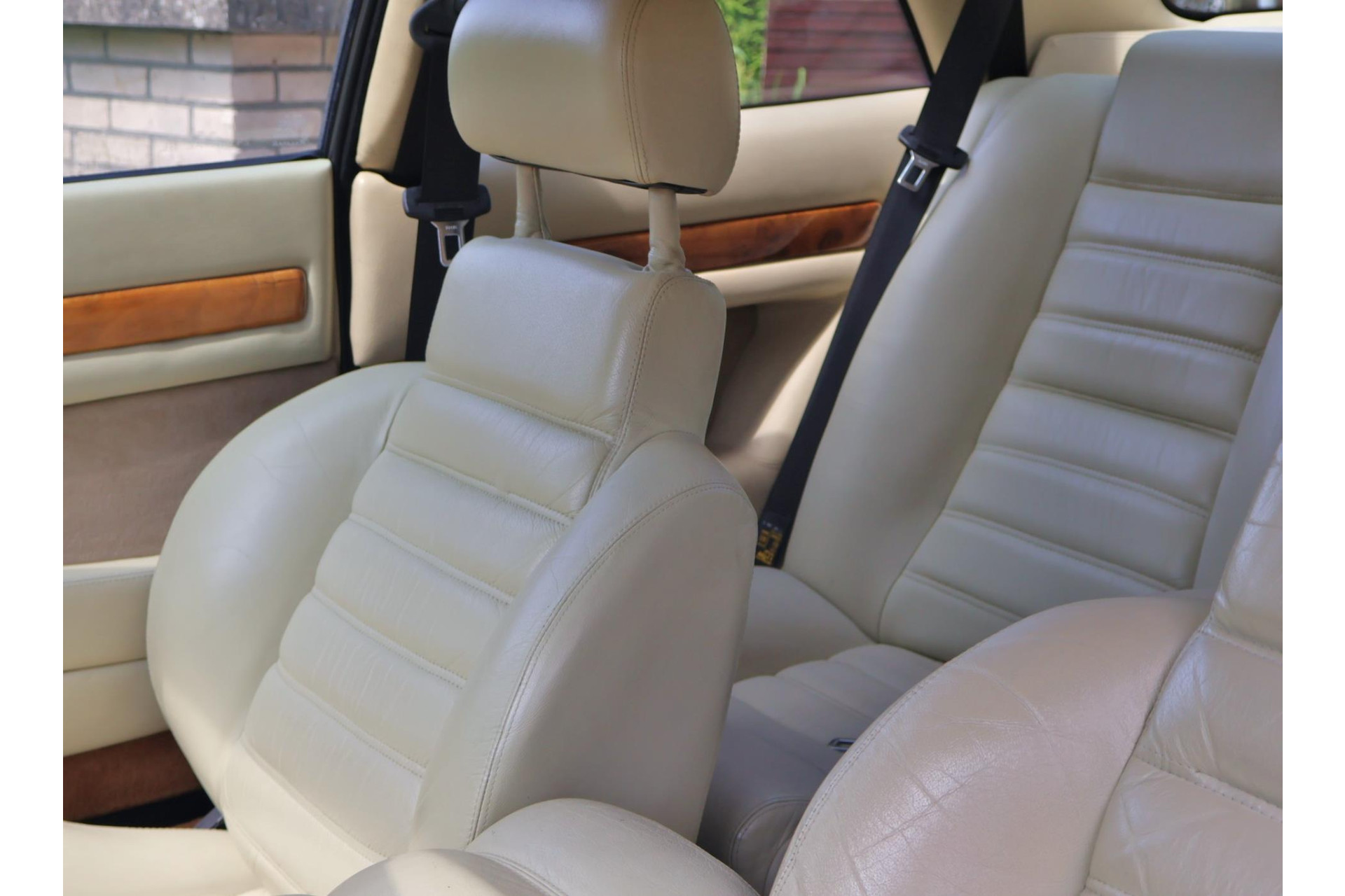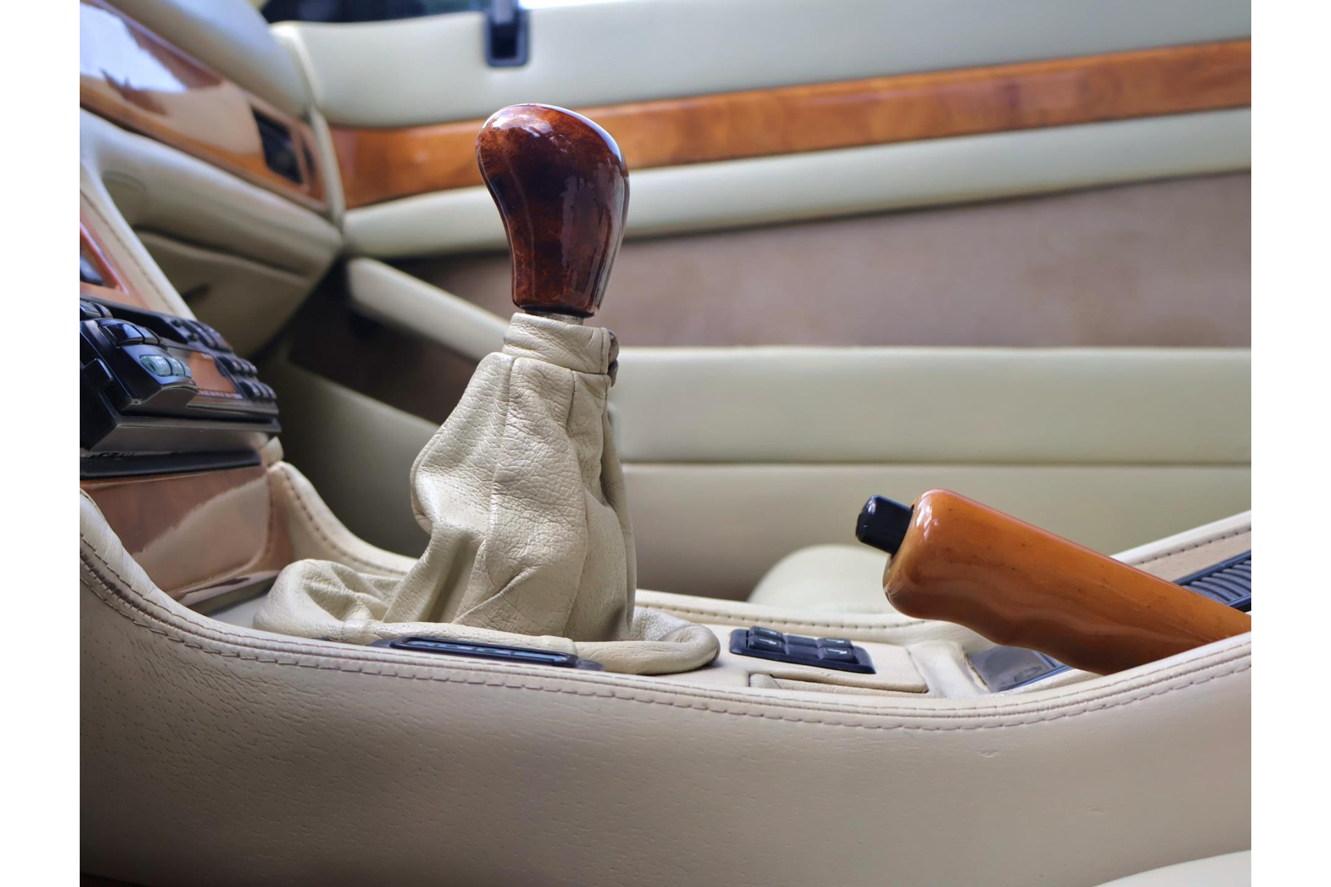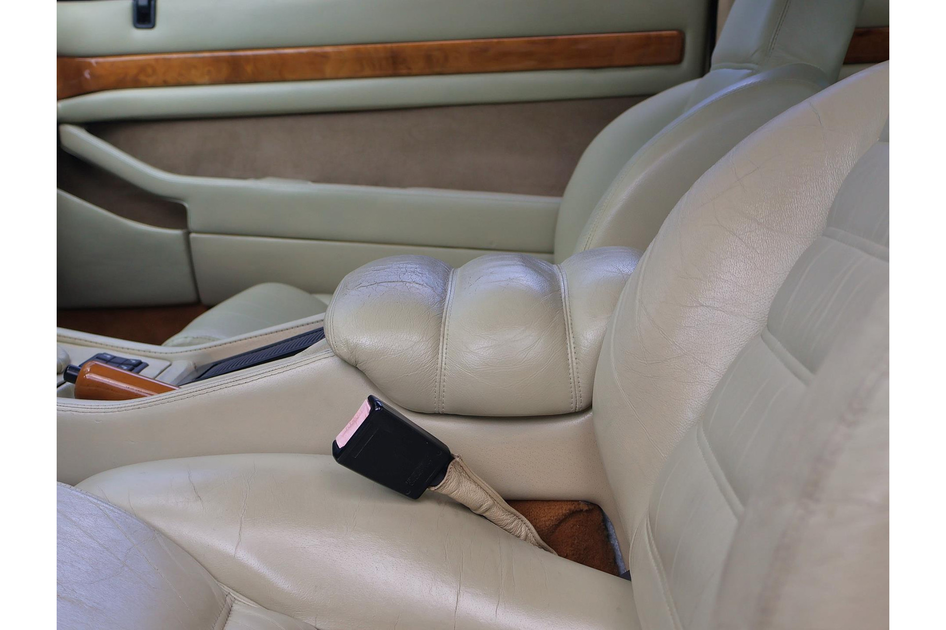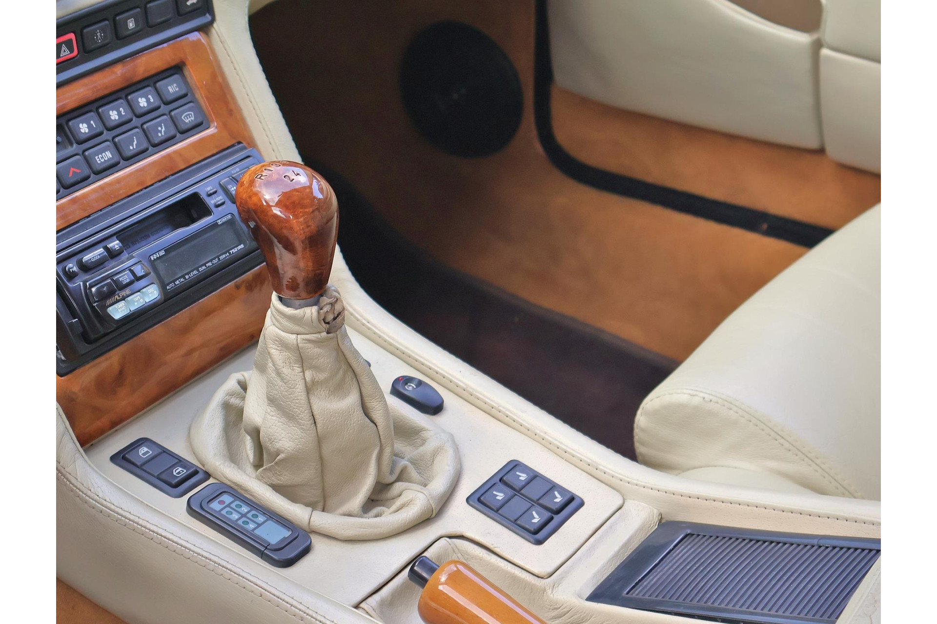 Het bijpassende Avorio lederen interieur met de bruine tapijten, houten interieurlijsten en stuurwiel, alcantara hemelbekleding wordt enkel gezien bij zo’n italiaanse exoot.