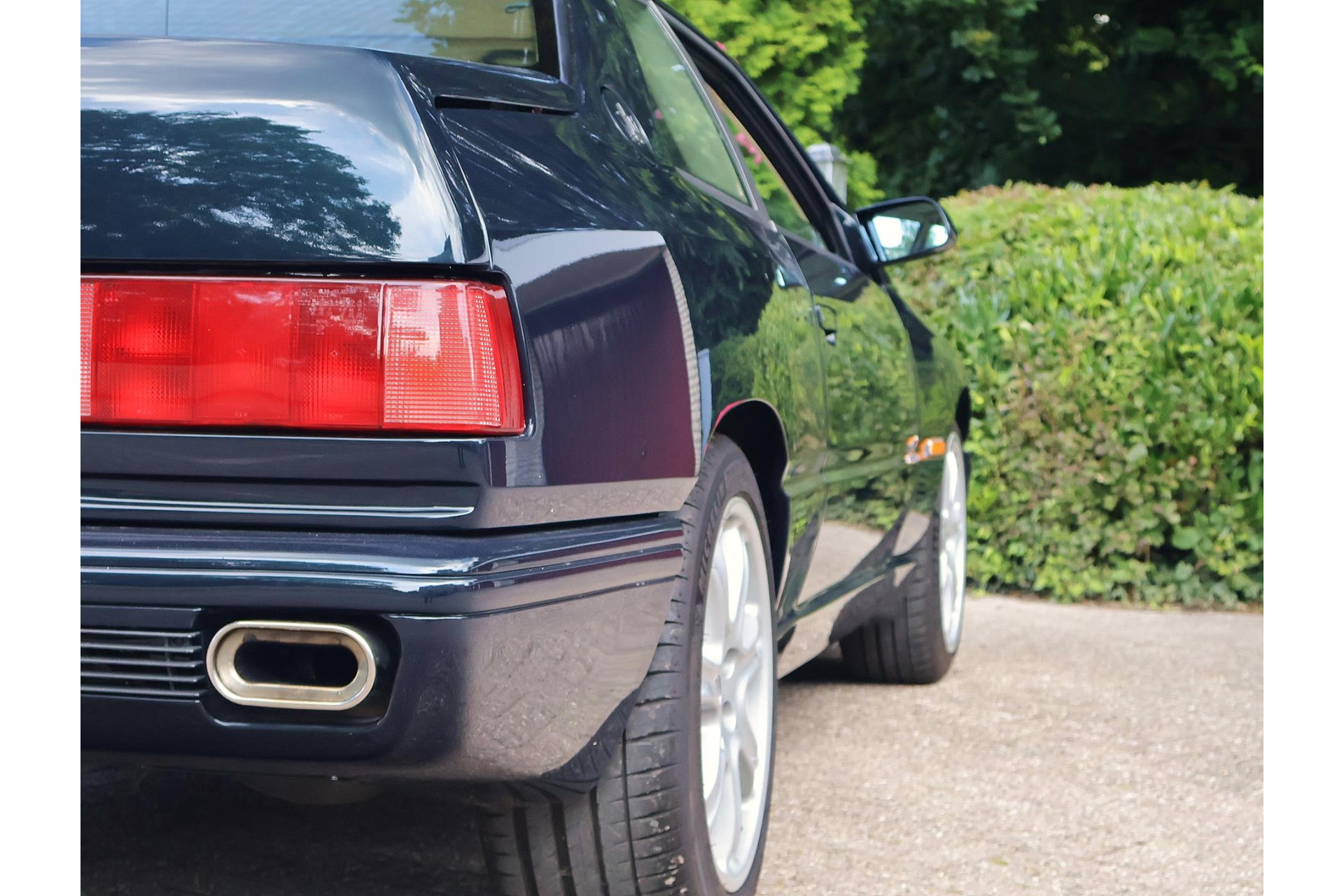 Als je snel kijkt lijkt de auto zwart van kleur. Maar in het zonlicht krijgt deze een prachtige diepe groene kleur met een vleugje blauw.