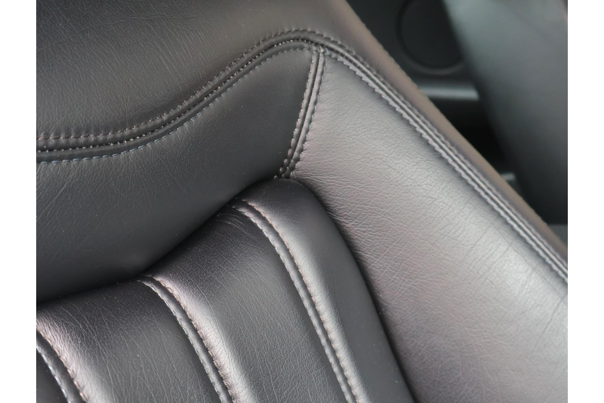 Nero leder bekleding met fijne blauwe stitching